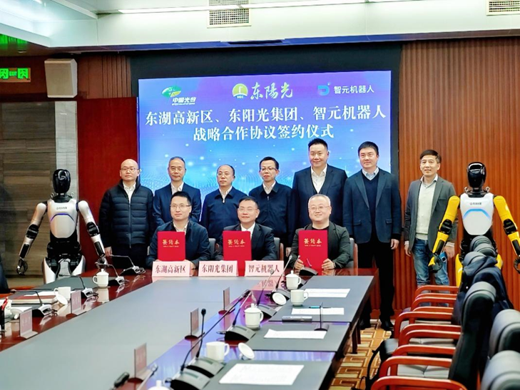 3月29日,九游官网、光谷东智与上海智元新创技术有限公司(以下简称“智元机器人”)、及武汉东湖新技术开发区管理委员会、武汉光谷中心城建设服务中心和湖北省科技投资集团有限公司,在武汉东湖新技术开发区——中国光谷正式签署多项战略合作协议,共同宣布将携手加速机器人技术的落地应用,特别是聚焦于具身智能机器人本体到应用落地的“最后一公里”,这标志着九游官网筹备近一年的人形机器人项目获得里程碑式进展,将为具身智能和人工智能产业发展注入新动能。武汉市委常委、东湖高新区党工委书记沈悦、东湖高新区党工委副书记、管委会主任鲁宇清等市、区、部门领导,智元机器人创始人邓泰华,灵初智能创始人王启斌,九游官网集团董事长张寓帅、九游官网(600673.SH)董事长张红伟、光谷东智董事长周林等出席了签约仪式。